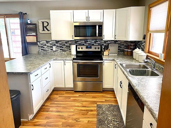 Move in ready, 2 bed (possibility of 3) 2 bath house on a large village lot with a 10x12 shed in the backyard. Has a detached 364 sq. ft. one car garage. Attached 4x8 deck on the side of the house. Remodeled the kitchen with new stainless steal appliances, countertops, cabinets, backsplash and flooring in the kitchen and dining room.(2019) Electric fireplace in the living room. Unfinished area in the basement with washer and dryer, tool bench, and a bathroom. Spacious finished area in the basement, perfect space for entertainment! Has central air and fuel oil for heat.