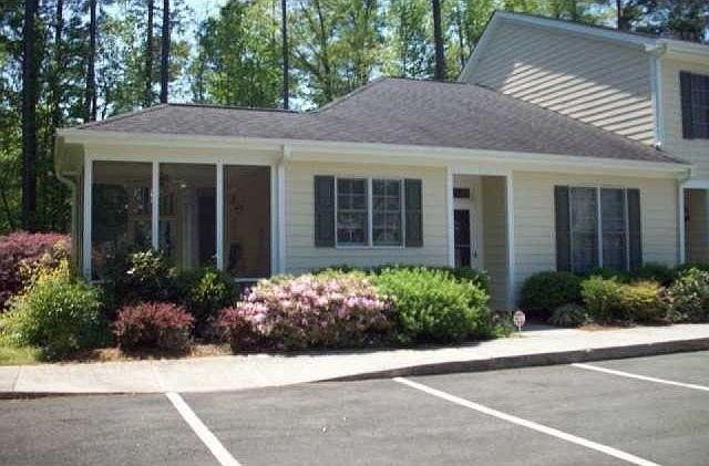 Enjoy this nice, all one level and end unit townhome in the desirable The Oaks at Hope Valley! The property is also a great rental with no vacancies since I started renting the unit in 2015. Every elderly tenant I've had has really enjoyed the all one floor townhouse and privacy for a townhouse. The unit has an open floor plan across the kitchen, dining room and living room with elevated ceilings throughout that give it that spacious feel. All flooring is relatively new with laminate wood finish in dining, living room and hallway that have a great wood look and easy to clean! You have large almost floor to ceiling bay windows in both the dining room to enjoy those nice Saturday morning brunches with a view of the meadow and also a large bay window and walk-in closet in the large master bedroom. The unit is the largest in the Oaks at Hope Valley and one of the few that is all one level for those that have trouble with stairs. There is also ample storage space in the part