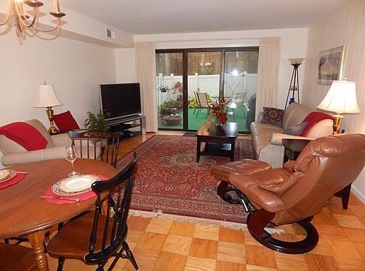 Welcome to this meticulously maintained Gold Star 1 bedroom townhouse at Windsor Green. This unit is set back in a quiet corner and backs up to the woods. Enjoy preparing meals in your updated kitchen with ample cabinets, electric range, microwave & dishwasher. The Open Floor Plan offers a flow from the kitchen through to the dining area and living room; spilling out onto the magnificent fenced private yard, perfect for entertaining. The unit features hardwood flooring (parquet style in the living room & 2nd floor hall), Renovated Full bath with tile floor, Vanity with Granite (2014) Tub & Tile (2016) & vinyl Wainscoting, hardwood in the Master, oversized closet with shelves leading to the attic, and laundry hook up. Gas heating, Gas Hot water Heater, & Central air for those hot summer days., and storage shed in the yard. Enjoy all the amenities the complex has to offer: in-ground pool, tennis & basketball courts, and playground area . Conveniently located. Call today for a preview