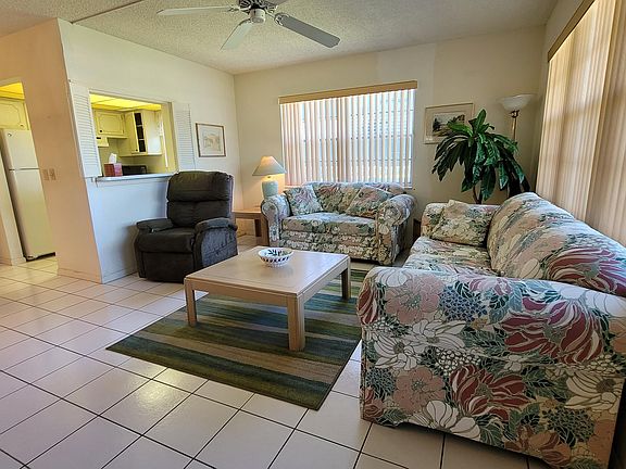 Welcome to the paradise of South Florida, resort-style social living at its absolute best. Enjoy this wonderful ground floor condo with one bedroom, one and one-half bath located in sunny West Palm Beach Florida and experience the distinct Century Village ''way of life'' with luxurious recreational facilities and abundant social activities. Very private outside corner or end unit. Fully furnished on the ground floor of a very well-run and friendly Association. Tile floors throughout. The building is in excellent shape, recently painted and with non-slip walkways. New roof in 2020. Amenities including a 1200-seat theater, live entertainment, free current run movies, 15 swimming pools, tennis and pickleball, bocce ball, cards, clubs, and fitness center. This ground floor unit is conveniently located between I-95 and the Florida Turnpike, about 8 miles west of the Atlantic Ocean and the gorgeous Palm Beaches and minutes to Palm Beach International Airport. This condo is available for you to enjoy as a year-round home or just an escape from the winter weather.