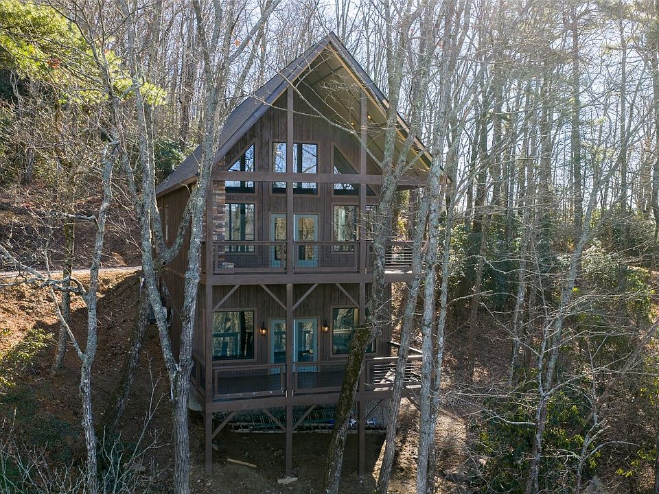 Perched at an impressive 3,600 feet above sea level, this new construction stunning mountain retreat invites you to live among the clouds in the breathtaking Blue Ridge Mountains of Western North Carolina. Located in the exclusive gated community of The Overlook at Sapphire, the home offers a lifestyle defined by privacy, comfort, and a deep connection to nature. Here, panoramic landscapes unfold at every turn, where native wildlife thrives, and the seasons paint Sapphire Valley and Cashiers Valley in ever-changing hues. Set on 1.93 acres and overlooking the storied Bald Rock Mountain—once known for historic mining and later used for Vietnam-era air training—this custom residence captures the spirit of mountain living through thoughtful architecture and refined finishes. Designed by renowned architect David Narramore of Narramore Associates in Greenville, SC, the Blakely floor plan offers approximately 2,650 heated square feet, including three bedrooms, two-and-a-half baths, and a versatile loft perfect for hobbies or overflow guest space. The main level brings everyday living to new heights with soaring ceilings, a beautifully appointed kitchen, and a great room anchored by a grand stone fireplace. A spacious primary suite with a walk-in closet ensures comfort and convenience, joined by a powder room and well-designed laundry space. Downstairs, guests can unwind in a second living area accompanied by two bedrooms, a full bath, and ample storage. Two levels of outdoor decks extend the living spaces into the fresh mountain air, each capturing seasonal views, the main level deck has a cozy fireplace for year-round enjoyment. Craftsmanship is showcased throughout the home with cultured stone accents, custom hardwood floors on the main level and loft, tile in baths and laundry, and quartz countertops paired with premium cabinetry. Every finish and feature has been selected to balance rustic mountain character with modern elegance. Whether gathering beside the flicker of a fire, exploring the surrounding peaks, or simply savoring the serenity, this is a home that elevates mountain living to something truly extraordinary. Welcome to The Overlook at Sapphire, where the beauty of nature and the comfort of luxury come together seamlessly.