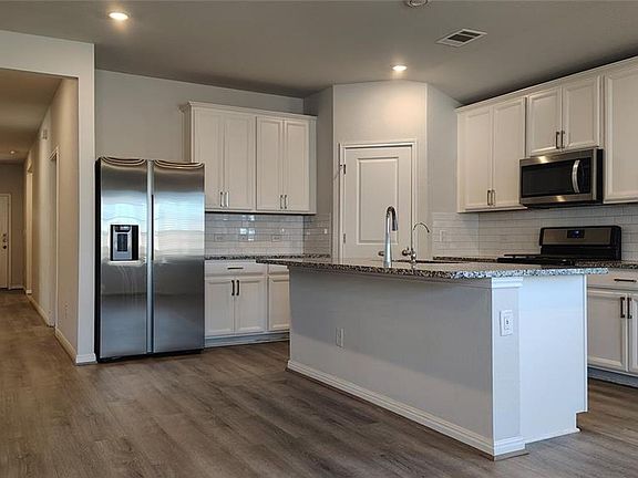 Beautifully designed 4-bedroom, 2.5-bath single-story home in the Cross Creek subdivision. Spacious and modern open-concept floorplan with clear views between the family room, breakfast area, and kitchen. The kitchen includes beautiful salt 'n pepper granite countertops/island with white tile backsplash, updated fixtures, and matching stainless steel appliances, including a dishwasher, freestanding gas range, microwave, and refrigerator! The primary bedroom is your personal sanctuary with abundant natural light, an ensuite bath, dual vanity sinks and a spacious walk-in closet. Beat the Central Texas "hard water" with a water softener, reverse osmosis system and a tankless water heater! In addition to your own private backyard with covered patio - check out these amenities - pavilion, playground, swimming pool and splash pad. Residents will love the hometown Hippo spirit & renowned Hutto ISD. Great value and location!