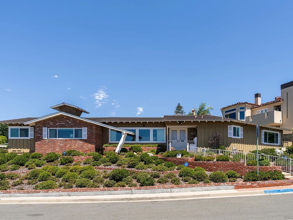 Built in 1958 this single-story home is sited on corner lot in the heart of Mission Hills. Mid-Century aesthetics highlight kitchen, dining area, family room and living room with Genizaro paneled walls, vaulted wood ceilings and sliding glass doors leading to central patio. Ensuite primary bedroom features large closet, connecting bedroom and bath. Two other bedrooms share views to patio. Front windows offer glimpses to the bay and Point Loma.