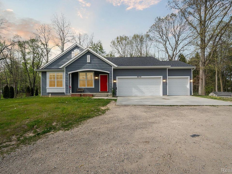 Welcome to this charming 4-bedroom, 3-bathroom ranch-style home, thoughtfully built in 2021 with over 1 wooded acre in Fenton Township, this property offers a beautiful view of Loon Lake. Step inside to discover a modern interior featuring granite countertops, Luxury vinyl plank flooring and a master suite equipped with a large shower and soaking tub. The spacious basement adds versatility with 10 foot ceilings, an additional bedroom and full bath, complete with an egress window for safety and natural light. Located in Lake Fenton School District, this home provides an ideal setting