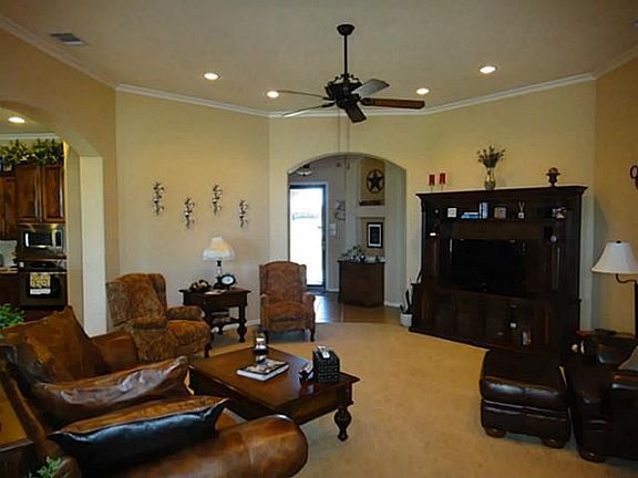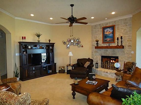 Custom built (Creative Homes) 4 bedroom home featuring brick and stone construction with many windows facing a secluded back yard overlooking pasture. The backyard features a generous patio which is shaded nicely in the afternoon, and a salt water pool/spa combination that has computer/remote controls and an in-floor cleaning system. The house is well lit with high ceilings and custom cabinetry and trim. In addition to the 3 car garage, additional side parking is provided in the driveway, as well as secured outdoor parking behind the remote controlled power gate. A tool shed on the property is provided, as well as a large lean-to for shaded parking of bicycles or other items. Neighborhood Description The neighborhood is a limited access, well kept, and quiet subdivision with a deed restricted and reasonably priced HOA. The neighborhood is primarily custom built homes, without any through streets, so traffic is a minimum. This house is located in the rear of the neighborhood, which makes for a very quiet setting. The HOA hosts a few activities each year to promote neighborhood fellowship.