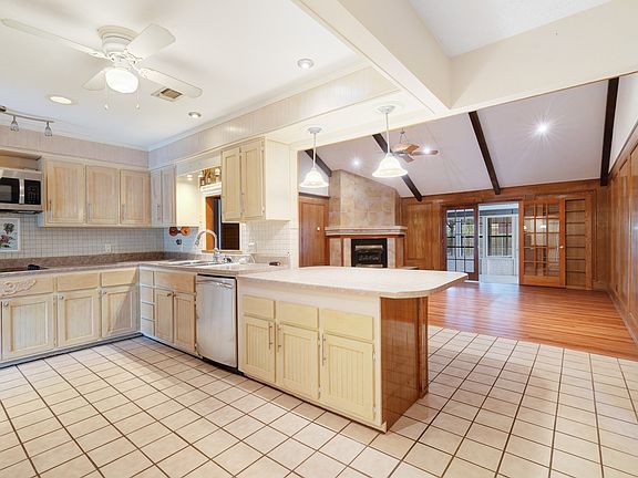 Welcome to this beautifully maintained, single-story home that perfectly blends classic charm with inviting warmth. The timeless brickwork exterior is accented with Tudor-style details, mature trees, and a lush front lawn.