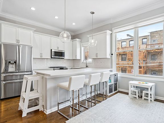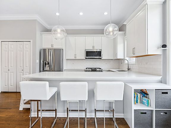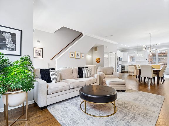 Offer has been verbally accepted pending relocation company signatures. Welcome home to this tastefully updated 3 bed 3 bath townhouse that lives like a single family home located in the quiet NW corner of a private courtyard complex in Blaine Elementary District. The second floor open concept living/dining/kitchen space is fully updated with new cabinets, lighting, appliances, quartz counters, and a custom pantry. Two living spaces with oak hardwood floors, a dining area, custom built ins, a gas log fireplace with quartz surrounds, and a private balcony for grilling round out the entertaining level. Upstairs the massive primary bedroom suite has been fully updated with custom millwork and a new primary bath with dual vanity & spa-like custom tile bench shower. Ample his & her closet space with a custom walk-in. Across the hall, the updated second bedroom suite is perfect for a baby or small child and has room for two beds. Washer & dryer located in between the two 3rd floor bedrooms. On the first floor, an updated bedroom suite perfect for a combo work from home office and guest space. The spacious 2 car garage has updated shelving and a heater along with storage above. Matterport 3D tour available by clicking on the Virtual Tour icon. Outside, enjoy a lovely private courtyard area with guest parking for 6. Well run association with 100% owners and rentals allowed. A+ city location a short walk to the Southport Corridor shopping & Blaine Elementary. Sheridan Red Line stop is .5 mi away to the east. Incredible food & drink options a short walk away include: Bombastic Cafe & Steingold's, Port & Park Bistro, Tango Sur, Coalfire Pizza, and everything further south on Southport (Coda di Volpe, Ella Elli, Crosby's, Southport Grocery, Corridor Brewery). For entertainment, walk to historic Wrigley Field for Cubs games & concerts, Alamo Draft House and Music Box Theatre for movies, & Lucky Strike Social for bowling and games. A townhouse with all these wonderful updates in a top notch school district and incredible location make this an opportunity not to be missed!