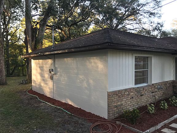 Charming. Like new. Concrete block. 3 bed 2 bath split plan. Peaceful neighborhood. Quarter acre lot. Walk to Publix and dining. New Roof. New Air Conditioning.New Appliances. New water heater. New paint inside and out. New kitchen sink. New faucets throughout. Laundry with W/D hookup. 10x16 Florida Room. 8x14 outdoor Utility Shed. New Vinyl Waterproof plank flooring throughout . Faux electric Fireplace . New septic drain-field. Separate well for irrigation system.