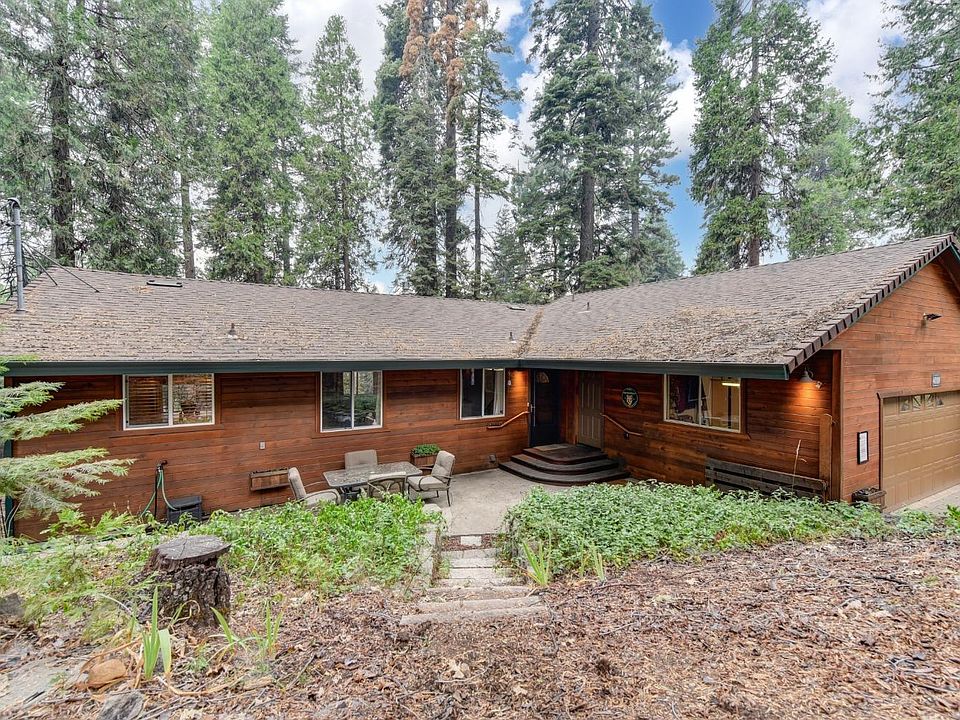 This lovely, well maintained 2-story, 2106sf home boasts 2-3 bedrooms, 2 bathrooms and a large family room that could potentially be used as an additional bedroom. The wood vaulted ceilings in the living room add to the charm of the home and give it a cozy cabin feel. The enclosed back patio, designed as a meditation retreat, offers a peaceful place to relax and unwind. The home features natural cedar siding, beautiful wood floors, custom cabinets and epoxy flooring in the garage, an attached storage shed with electricity, and a newer roof installed within the last 2 years. This property offers plenty of recreational activities for the whole family to enjoy, including a recreation center, disc golf, pools, basketball and tennis courts, playground, BBQ areas, horseshoes, and walking trails. Located in the Gold Ridge Forest, which is known for its natural beauty and benefits. The property is also conveniently located near Sly Park Recreation Area/Jenkinson Lake, which offers additional outdoor activities and opportunities to explore the surrounding area. This a great fit for someone looking for a vacation home or a primary residence that offers plenty of amenities and opportunities for the outdoor enthusiast.