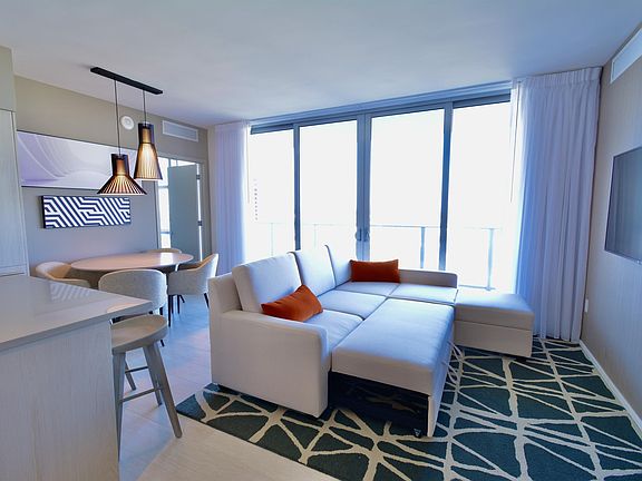 Airy, light-filled residential interiors capture the casual luxury of life at Hyde Beach House. Every residence has been pre-wired with "Smart Building" features including fiber optics for high-speed wireless internet, cable TV access, and individual climate control systems. Residences are move-in ready with luxury finishes and designer European furnishings.