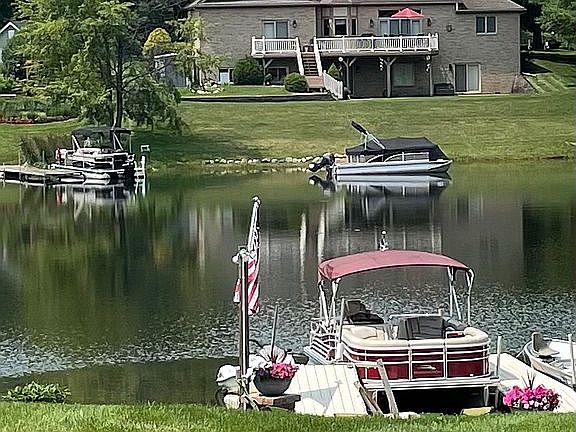 Totally remodeled and updated in 2005 and 2007. Open floor plan with extensive use of hardwood, tile and granite. Chefs dream kitchen with stainless appliances. large dining overlooking the Inground Pool and Lake with sandy beach. Great room with sstone fireplace, living/sitting room, luxurious master suite, full finished walkout lower level with recreation room, kitchen/bar, exercise room, office/4th bedroom,and salon room. Amazing landscaped paver stairs to lake, landscaped fire pit near lake. Second landscaped patio off kitchen. Pool has new liner in 2019. And all new filter pump and heater. Main living area repainted in 2019. Truly an entertainment home for year round fun!