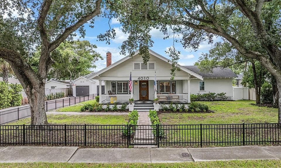 Historic South Tampa Craftsman Home with an Assumable Loan. (Tenant Occupied Please do not disturb.) Showings by Appointment Only-24 Hour Notice Step into a piece of Tampa history with this beautifully updated 1925 Craftsman bungalow on an oversized lot in the sought-after Grady, Coleman, and Plant school districts. This one-of-a-kind home blends timeless character with modern updates, featuring three bedrooms, three baths, an office/den, and a vaulted-ceiling primary suite. Original woodwork, floors, and windows remain, complemented by upgrades like California Closets, a new HVAC system (2024), and a detached two-car garage with Tesla charger and additional EV port. Perfect for multigenerational living, the oversized lot and detached garage offer the potential for a complete guest or in-law suite—while still leaving plenty of parking. A rare 2.75% assumable VA loan (available to veterans and non-veterans who qualify) adds significant financial value. The property also includes approved pool renderings with $34K in prep work completed. If the buyer chooses to utilize the existing renderings and contract, they can build the pool at the original locked-in pricing—offering substantial savings compared to today’s costs. (Only good until December 31st, 2025.) Recent updates include: • Exterior: full repaint (2022), fencing & gates (2023), custom side porch (2023), uplighting (2024), irrigation system (2024), landscaping (2024). • Interior: plantation shutters (2022), Murphy bed & built-ins, updated baths, new water heater (2023), fireplace hearth (2024). • Systems: new HVAC & ductwork (2024), termite tenting w/ warranty (2024). Additional notes: stove is electric; propane tank supports hot water heater and allows easy conversion for gas cooking. All appliances convey except dining chandelier. This rare South Tampa opportunity combines historic charm, modern convenience, financial advantages, and potential pool savings—all on one of the area’s most desirable streets.