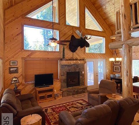 CUSTOM BUILT LOG SIDED CABIN WITH MATCHING 30X40 GARAGE, 10X12 INSULATED DOORS WITH OPENERS, DRIVE OUT DOOR, AND STUDIO LIVING SPACE/STORAGE CLOSETS/FULL BATH/REFRIGERATOR/KITCHEN/MICROWAVE AREA ON LEVEL. Garage has stubbed propane to interior, 220 watt, inside faucets, totally finished with outside entrance to garage and separate entrance to living space. Garage has its own separate septic system. The garage is a man's dream to have adequate space and height for toys. THE CUSTOM CABIN has cozy living space with 3 bedrooms, 2 baths, 2 propane fireplaces, custom cabinetry, a loft, and a separate family room with space to view the beautiful forest from the upper level. This cabin and garage is definitely nestled in the forest, secluded, near the end of a lane, and has beautiful wild flowers in the summer in the open spaces. Sawtell Estates has a great homeowners association to protect one's investment. Nightly rentals are not permitted; 6 month lease or longer is permitted. This area is home to some of the best all wheel terrain trails, snowmobiling, fishing, hunting, and close to many of the lakes and rivers in the area. Yellowstone National Park is only 20 minutes away. This property is set up for year round living! NOTE: MLS Data grid basement reflects space in upper garage.
