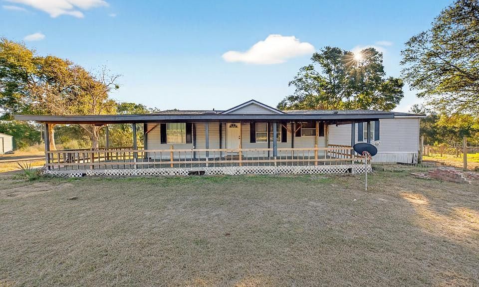 3.4 Acres with a 3 Bedroom / 2 Bath, 1800 sq ft MH in a prime location of Rural Lake County Fl. Around the corner from Lake Yale Public Boat Ramp or a couple miles from the Ocala National Forest, this property will fulfill all your outdoor goals for fishing, hunting, hiking, boating, and let's not forget the horses, cows and chickens! Open floor plan with a wood burning fireplace in the living room! Large Kitchen with pantry and newer Kitchen Appliances (including Dishwasher, Microwave, Range). Kitchen Cabinets, Counter Tops, Sink and Faucet have also been replaced. The Primary Bedroom En Suite is very spacious with a Walk-In closet, large adjoining bath and a 144 sq ft additional seperate space perfect for an office, lounge area, hobby nook, dressing room, endless ideas! Mobile Home has many more updates including: Bathroom Cabinets and Faucets. Flooring throughout. Large, covered front porch measures 12x46 - perfect for gathering. Barn / Shop measures approx 80x26 total. 40x26 covered for equipemnt parking or easily converted to 4-10 foot stalls (or more if smaller animals) with overhang and a 40x26 enclosed space for workshop, feed and tack, etc. Roof does need repair on the enclosed side but doesn't leak on the other 40 foot. Electric and water also in the barn/shop. Garage door on enclosed side and also a utility walk-though door to polebarn side. Very quiet and peaceful. And a short drive to grocery, dining, entertainment, professionals, hospitals. Easy commute to Orlando or the Toll Roads. AC 2021 - New Compressor Jan 2026. Roof 2017