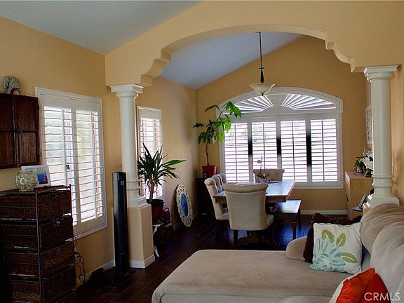 Welcome to this beautiful 2-story home ready for immediate move-in. this home features 5 bedrooms, 3 bathrooms, 2 large family rooms, wood-like tile flooring throughout, and beautiful shutters on all the windows. The kitchen has gorgeous dark cabinets, recessed lighting, a built-in microwave above the oven, and a stainless steel stovetop. Dual-sided fireplace in the family room, open floor plan, with vaulted ceiling in the dining room. Spacious 4 bedrooms upstairs, the large master bedroom includes a fireplace, walk-in closet, separate bathtub, and shower—large bathroom upstairs, 1 bedroom downstairs, and a complete bathroom. The spacious laundry room has shelves, cabinets lots of storage space, and a sink. Spacious 3-car garage. The large backyard has a covered patio cover running the length of the home. Solar panels (please contact listing agent for full disclosure/information on the Solar panels) This fantastic home is in a great location, close to Schools, shopping centers, and malls. This beautiful home is a must-see.