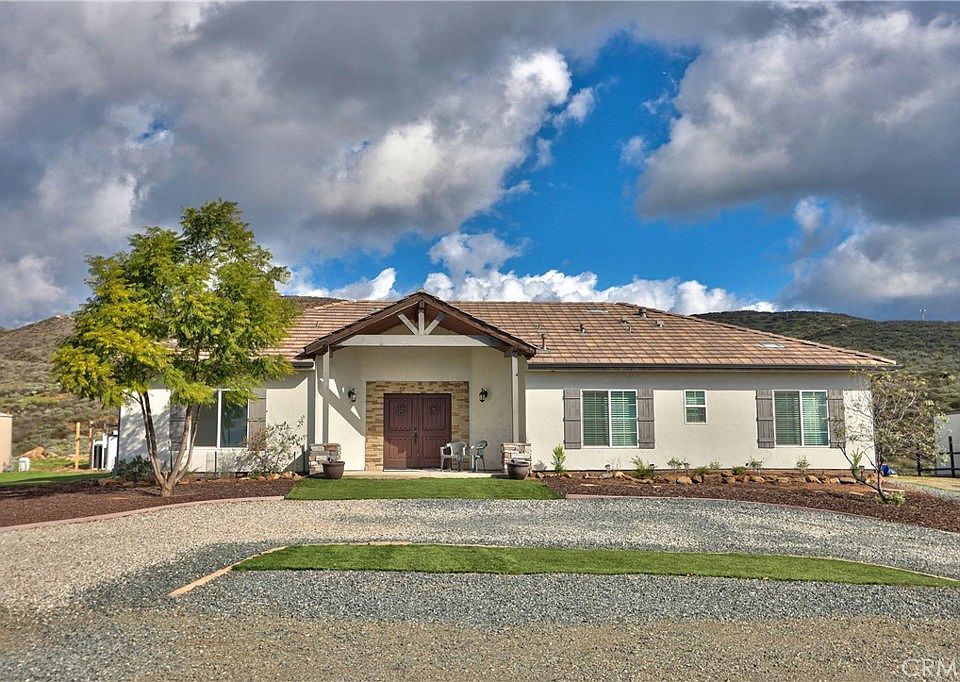 A rare opportunity to own just over 20 acres in Temecula with breathtaking valley views and a fully off-grid home built in 2015. Step through grand entry doors into a bright, open-concept living and kitchen space designed for effortless flow and entertaining. The split-wing floor plan offers a private primary suite on one side of the home, with secondary bedrooms on the other—ideal for comfort and privacy.