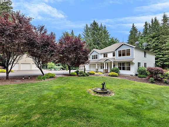 Welcome to this exceptional 4-bedroom + office, 3-bathroom home offering 3,765 sq ft of thoughtfully designed living space. Situated on a serene, mostly flat 2.5 acre lot. This property combines privacy, functionality, and amenities, such as a 1600 sq ft DETACHED SHOP that was built in 2017 and could potentially be made into extra living space or ADU - it has a partially finished bathroom, a loft and a wood stove. All of this is behind a fenced, gated entry with a circular driveway. The attached garage is oversized with lots of workspace area. There's tons of room to park all your toys or equipment. The main level of the home features an office that could possibly be a 5th bedroom, and a bathroom with a walk-in shower, which is ideal for guests or multi-generational living, formal living room, dining room, family room with a gas fireplace and a lovely kitchen that was updated in 2016 with beautiful countertops, new appliances and LVP flooring. Right outside the kitchen nook area is a sliding door taking you to a large deck with a hot tub overlooking the park-like backyard. The outdoor firepit area is perfect for entertaining or relaxing evenings. Upstairs you will find a large loft, three additional bedrooms, a full bath, laundry room, and the Primary Suite which is huge with a gas fireplace, jetted tub, walk-in shower and walk-in closet. This fabulous home has a fresh coat of exterior paint, HVAC/heat pump replaced in 2013, and a backup generator for added peace of mind. This home offers privacy, generous space, and flexible outbuildings — perfect for hobbyists, or anyone seeking room to live and grow. Come take a drive up the beautiful Washougal River Road and view this home today.
