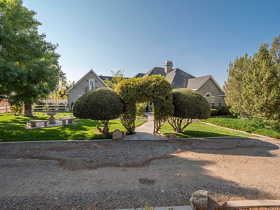 White Fence Farms welcomes you to this lovely 3 bedroom 3 bathroom home nestled in a private location on 2.57 acres. Inside you have vaulted ceilings, elegant pillars, custom moldings & many more amenities. The living room features a granite fireplace & hardwood flooring with a large custom rug made just for the room. The formal dining room has its unique touches; which include hidden compartments & drawers. The grand kitchen offers granite counter tops, a six burner range, center Island with wine storage. All appliances are stainless steel. The cabinets & pull out drawers are hand rubbed walnut. The master suite showcases a cozy fireplace & access to the backyard. The master bath features dual sinks, a Jetted tub & separate shower. Upstairs you will find a private studio with a full bathroom & access to the balcony for a gorgeous view. The outside is filled with lush greenery, landscaping, a horse corral & horse facilities, built-in barbecue & more! Contact me for a private showing.
