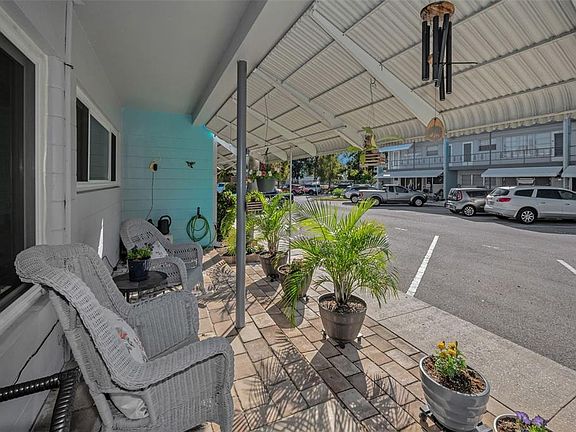WOW…FIRST Floor…GROUND Floor…!! The most requested and popular 2 Bed 2 Bath floorplan comes with loads of updates. New AC 2025, newer Hurricane impact windows and doors 2024, newer hot water tank 2024, full size washer and dryer 2024. Newer dishwasher 2024. A welcoming covered front porch, perfect for rocking chairs and enjoying your morning coffee. Your personal parking space right outside your door, plus plenty of guest parking. Newer 2024 custom 2” blinds on all windows allow as much natural light as you want. The spacious kitchen offers an abundance of cupboards and counter space to make any gourmet chef happy. The oversized Master bedroom is large enough for all of your furniture and includes your own private Master bath with shower. The spacious second bedroom includes large windows providing plenty of natural light and a large closet that will make all of your overnight guests comfortable. The main bath offers a tub and shower combination, updated vanity and ceramic tile flooring. The cozy and comfortable Florida room (or den or office) offers plenty of windows that look out on a serene and peaceful courtyard, as well as full size washer and dryer. The Florida room opens out to a wonderful outside fenced and paved patio, perfect for your barbecues and enjoying the greenspace courtyard. This PET FRIENDLY community offers plenty of walking areas with mature trees. The building has a newer 2024 roof and routine termite maintenance was done in 2025. LOW MONTHLY CONDO FEE includes Cable, Internet, Wifi, water, sewer, trash removal, insurance on the exterior building, roof and maintenance on the grounds. And NO Special Assessments. The popular Clearview Oaks community offers a clubhouse with lots of activities, a library, shuffleboard and car washing station. Clearview Oaks is conveniently located close to shopping, medical facilities, Tyrone Square Mall, the Northwest Community Center with Olympic sized pool, the beautiful Gulf Beaches and downtown St. Petersburg and the Pier. This home will make a wonderful full time residence or a second home to enjoy all the Florida lifestyle has to offer. Please call for your private tour or a Facetime Realtime Tour.