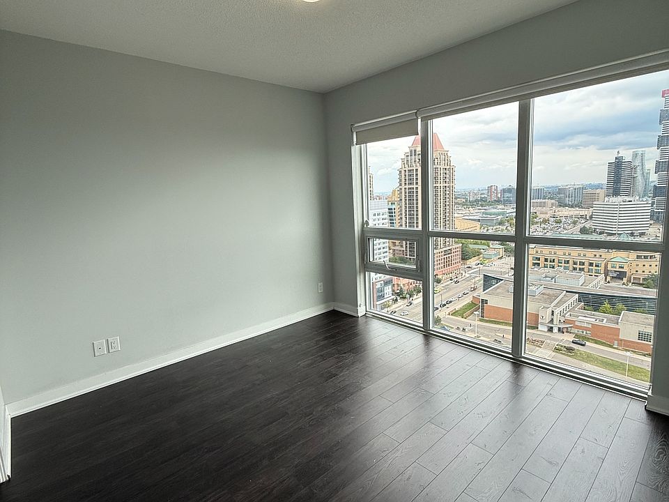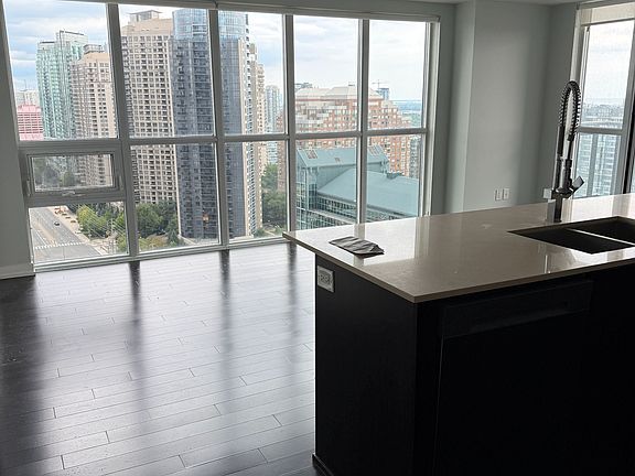 Experience modern living in this stunning suite with 9 ft ceilings, floor-to-ceiling windows, and an open-concept layout.Corner Unit with a den Features upgraded floors, stylish lighting, and a sleek kitchen with stainless steel appliances and granite countertops. Enjoy a spacious living/dining area with walk-out balcony and panoramic views. Steps to Square One, Celebration Square, YMCA, transit/GO, fine dining, and more. Easy access to Hwy 403/401/QEW.