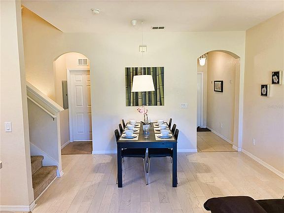 This spacious 3-bedroom, 3-bathroom townhome is located in the Gated resort community of Regal Palms in Davenport. Discover a well-designed floorplan featuring a combined living and dining area that flows into the open kitchen — perfect for entertaining and everyday living. Downstairs, you’ll find a bedroom with a full bathroom. Upstairs, the primary suite offers an en-suite bathroom with a relaxing garden tub/shower combo. Laundry room is located on the second floor. There is an additional bedroom with en-suite bathroom on the second floor. The second bedroom has access to a balcony. Regal Palms offers resort-style amenities like a huge pool with a lazy river and waterslide, clubhouse, fitness center, playground, and 24-hour guard gate. The monthly HOA dues include cable, internet, trash service, landscaping, and exterior maintenance, MAKING YOUR LIFE MUCH EASIER. Whether you're looking for a full-time residence, vacation home, or short-term rental opportunity, this home is perfectly located near shopping, dining, golf courses.