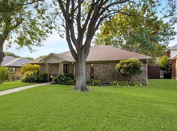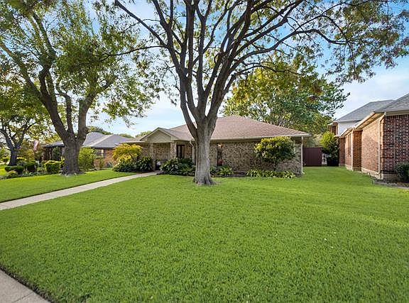 Single level living with great curb appeal & no carpet in sight! Luxury planks throughout the home naturally illuminated by oversized skylights. You will love the recessed ceilings & modern updates in the kitchen and master bath. Dine-in kitchen boasts granite surfaces, stainless appliances, & ample cabinet storage plus a practical built-in desk overlooking living area. Master bath features an oversized shower & dual vanities. Enjoy evenings outside on the patio overlooking the very private, lush backyard with board on board fencing & a giant red oak tree proving a natural shade canopy. Walk down the street to find a playground, access to multi-mile walking trail network, & the Addison Athletic Club. No HOA!