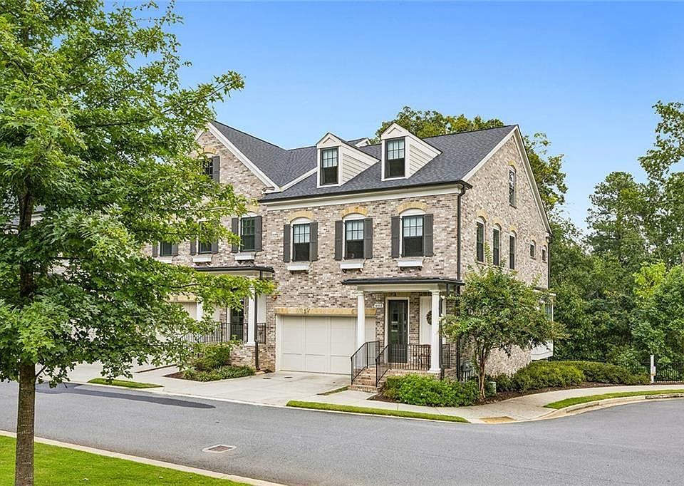 Welcome to Atwater, one of Sandy Springs’ most desirable gated communities, where luxury and convenience come together in an unbeatable location. Just a short walk to City Springs, City Walk, upscale shopping, and top dining, this like-new end-unit townhome offers refined living with the ease of a private elevator servicing every floor. Step inside from the covered porch into a sunlit foyer that opens to a spacious, open-concept main level. The chef’s kitchen is designed for both function and style, featuring high-end stainless steel appliances, a wall-mounted pot filler, quartz countertops with eased edges, a tiled backsplash, 42-inch upper cabinets, and a walk-in pantry. An oversized island overlooks the dining and family rooms, where a gas fireplace creates a warm centerpiece. A French door leads to a screened porch with wooded views—perfect for year-round relaxation. Throughout the home, hardwood floors on all three levels and soaring ceilings (10 feet on the main, 9 feet upstairs and on the terrace level) enhance the sense of space and light. The elegant staircase with stained oak treads leads to a loft-style flex space, ideal for an office or sitting area. Upstairs, the private primary suite includes a spa-like bath with dual quartz vanities, an oversized frameless shower, a large Kohler soaking tub, and a generous walk-in closet. A secondary en-suite bedroom and a spacious laundry room complete the upper level. The terrace level offers a third bedroom and full bath, a second family room, and abundant storage. French door opens to a private patio, extending the living space outdoors. Residents of Atwater enjoy exclusive access to a sparkling community pool, all within a beautifully designed neighborhood built just six years ago with exceptional finishes and architectural detail.