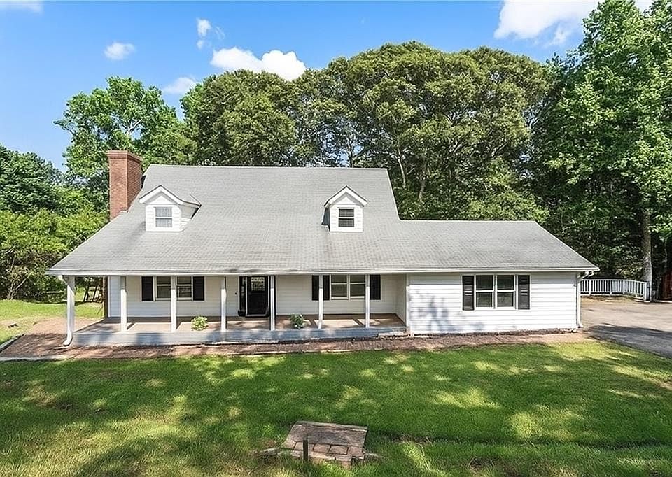 Charming Renovated Farmhouse on 2.3 Private Acres in the Heart of Lambert School District - Welcome to this beautifully updated farmhouse nestled on 2.3 wooded acres, offering seclusion, serenity, and no HOA restrictions. The peaceful setting is surrounded by nature, providing the perfect retreat with ample space to relax and unwind. Step inside from the oversized front porch through a rich, stained wood door to find a fully renovated interior featuring new luxury vinyl flooring, fresh paint, updated lighting and ceiling fans, and stylishly remodeled kitchen and bathrooms. The kitchen is outfitted with new appliances and a pantry for extra storage. The primary suite is conveniently located on the main level with direct access to a spacious covered deck overlooking the tranquil wooded backyard. Upstairs, two generously sized bedrooms share a beautifully upgraded full bathroom with a walk-in shower. Additional highlights include an unfinished basement offering abundant storage, a third-car garage, and an extra storage shed in the backyard. Situated in the highly sought-after Lambert High School cluster in South Forsyth, this home is close to GA-400, Halcyon, The Collection at Forsyth, Lake Lanier and North Georgia Premium Outlets. Enjoy proximity to top-rated schools, shopping, dining, parks, and greenway trails. This cozy country home is move-in ready and the perfect place to call home! Several photos in this listing have been virtually staged.