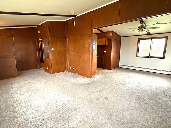 Sitting on a half-acre lot just off the highway, this project home offers space, structure, and strong potential. New septic in 2022 and roof in 2021. The property includes a detached garage, storage shed, mature trees, and a wide gravel drive. Inside, large windows, vaulted ceilings, and an open living/dining layout give the main level a functional footprint to update. The kitchen connects to the backyard entry, and three bedrooms provide usable space with natural light. The bathroom and basement offer additional areas ready for improvement. With room to rework, expand, or redesign both inside and out, this property is a solid opportunity for a buyer ready to create value. Roll up your sleeves and explore the possibilities to make this your next project. PRICED BELOW ASSESSED VALUE DUE TO FOUNDATION ISSUES - CASH OFFERS ONLY.