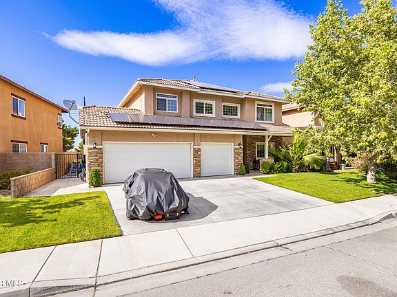 SPOOL (pool & spa combination) with waterfalls , adjoining dual fire pits. Adding to the upgrades is the new stamped concrete walkways and patio area plus a professionally installed 25 ft. high golf ball protection net with galvanized steel poles. This net provides safety without sacrificing views! With entertaining and leisurely living in mind, inside the home you will notice the custom crown molding, gorgeous hardwood flooring, formal living and dining room areas, a spacious kitchen with numerous cabinets, large center island and beautiful granite countertops. The popular OPEN concept kitchen and family room brings plenty of space for entertaining family and friends! A wood burning fireplace adds to the ambience of the rooms and brings warmth on our colder evenings. Home also features a whole house WATER FILTRATION system for fresh and clean water including a WATER SOFTENER ! An epoxy coating on the flooring in the 3-car garage is not just for aesthetics but adds durability and longevity bringing value to the home! Located close to parks, schools, entertainment, shopping and the 14 freeway! This large beautiful home can be yours and just in time for the holidays!