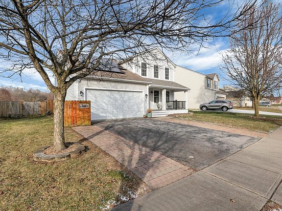 Beautiful open concept 3 bed, 2.5 bath home in Walnut Crossing backing up to a 1500 acre park reserve w/walking trails! Upgraded kitchen including SS appliances & granite countertops. Loaded with updates including: New furnace (2024), windows (2019), solar panels (2022) - no electric bill since installed!, covered front porch w/composite decking (2022), water heater (2018), new range (2021), dishwasher (2023), owner bath vanity (2023), LVP flooring (2021). Finished lower level. Large fenced in yard w/spacious covered deck & outdoor ceiling fans, shed w/electric makes a great work shop! 10 mins to downtown Columbus! Don't wait - this one will go fast!