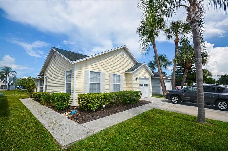 Welcome to the Village of Lakeside South! This adorable 3br/2ba offers 1181SF of living space and beautiful views of the neighborhood lake! You will appreciate the spacious family room with WOOD laminate floors, high ceilings, and NEW skylights. The efficient galley-style kitchen has been recently updated with a NEW STOVE-TOP RANGE and boasts black appliances, and a large breakfast nook with bay window. Be refreshed indoors with a NEW A/C UNIT! Additional newer features include HOT WATER HEATER, REFRIGERATOR, WASHER, DRYER, outdoor pavers, and fire pit! A SPLIT FLOOR PLAN provides added privacy to the master suite. Enjoy entertaining on your large enclosed Florida Room with ceiling fan and tile floors. Ample surrounding green space offers plenty of room to garden or play! Villages of Lakeside is a maintenance free community that is a tremendous value at $120/month. For this nominal charge, you will receive lawn care and basic cable. It also provides access to the heated community pool, clubhouse, tennis courts, shuffleboard courts, & a playground! From this location, Anna Maria Island, Siesta Key Beach and World Class Shopping are just minutes away!