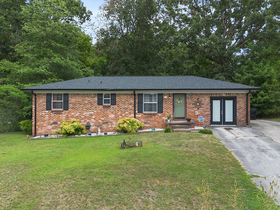 Fall in love with this delightful 3-bedroom, 1.5-bath single-level brick home. Abundant natural light and generous living spaces create a cozy, inviting atmosphere. The living room flows seamlessly into a cheerful kitchen featuring a pantry and ample countertop space, leading to a dining room that opens to a spacious deck and meticulously landscaped fenced backyard. Additional highlights include a versatile third bedroom/den with elegant French doors, a newer central heat and air unit for year-round comfort, and an extra parking pad for convenience. The home offers 1,383 sq. ft. of well-appointed living space on a .28-acre lot, complete with a fenced backyard, gated entry, hammock stand, compost corner, and handy storage shed. Updates abound with a roof, HVAC system, hot water heater, and gutters all less than 5 years old. Located just 10 minutes from Hamilton Place, East Brainerd, and Ooltewah, this prime location ensures easy access to shopping, dining, and entertainment. Don't miss out on this opportunity - contact us today! Buyer to verify square footage.