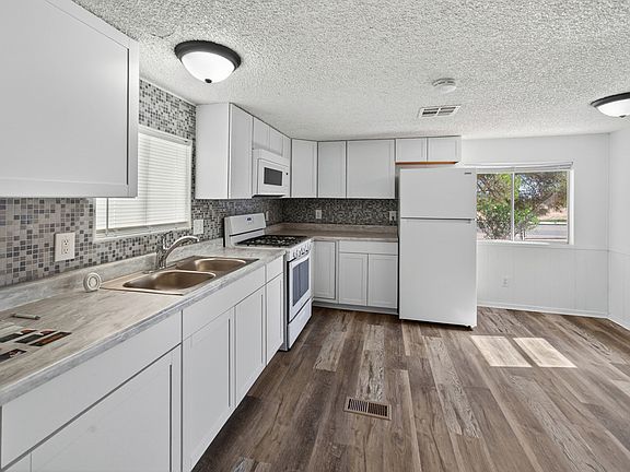 Welcome to your perfect blend of comfort and convenience! This beautifully remodeled 2-bedroom, 1-bath home is an immaculate gem, nestled on a lot with mature trees that provide a serene, shaded retreat. Inside, you'll find a host of brand-new updates, including fresh two-toned paint, new flooring, and an entirely new kitchen with sleek cabinets, countertops, and stainless steel appliances. The bathroom has been transformed into a modern oasis with a new vanity and a stylish tile shower-tub combo.