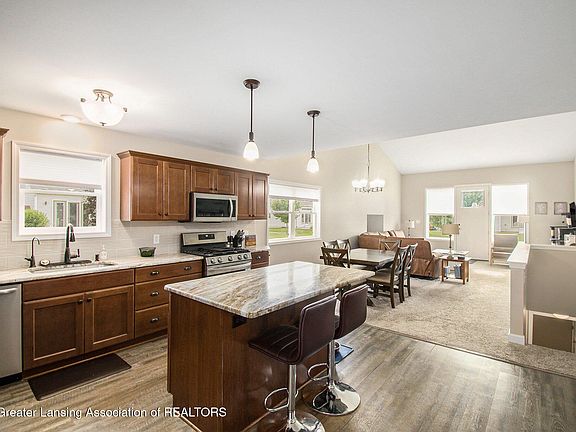 Welcome to 4012 Eastbridge Circle - a beautifully maintained 3-bedroom, 3-bathroom home in the desirable Stockbridge neighborhood, where comfort, style, and convenience come together. Step inside to a bright, open floor plan that immediately feels inviting. The living room's vaulted ceiling adds to the spacious feel, creating the perfect setting for both relaxed evenings and lively gatherings. At the heart of the home is a stunning kitchen featuring a large granite-topped island, ideal for meal prep or casual dining. Stainless steel appliances add modern flair, while the layout ensures cooking is always a pleasure. Practicality meets comfort with a first-floor laundry room and on-demand hot water heater for everyday ease. The main level also offers a private primary suite with a full bath and walk-in closet, plus a second bedroom and full bath for guests or family. Downstairs, the finished basement expands your living space with an additional bedroom and full bath - perfect for a home office, gym, or extended-stay visitors. Outdoor enthusiasts will love being just a short walk to the Lakeland Trails, while the charm of downtown Stockbridgewith its shops, dining, and community eventsis also within walking distance. Commuters will appreciate the peaceful setting paired with quick access to Lansing and Jackson. The attached 2-car garage adds convenience and protection for your vehicles. Don't miss this opportunity to own a home that truly checks every box. Schedule your showing today and discover the perfect blend of style, function, and location!