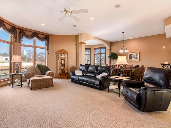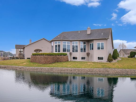 Welcome to your meticulously maintained, maintenance-free oasis! Nestled in the serene landscape, with views of the pond this home offers unparalleled tranquility and comfort. Step inside to discover the craftsmanship and attention to detail. Built with 2x6 walls, this home ensures durability and energy efficiency, The expansive 10-foot ceilings and amazing windows showcase breathtaking views of the picturesque pond, inviting nature's beauty indoors. Retreat to the luxurious master bedroom featuring a trey ceiling, adding a touch of elegance, The spacious walk-in closet offers ample storage, while the dual vanity and ceramic walk-in shower in the ensuite bathroom provide a spa-like experience. Throughout the home, you'll appreciate the thoughtful touches such as rounded corners, adding a touch of sophistication to the design. Lower level offers, look out windows, large storage area, Exterior offers concrete landscaping borders frame the manicured lawn, enhancing the curb appeal and providing easy maintenance, sprinkler system, with landscape drip lines, and is self draining. Rest easy knowing your home is equipped with a state-of-the-art security system, complete with glass break detectors, water alert sensors, and motion detectors, ensuring your peace of mind at all times. Additional features include a recently replaced water heater, a finished and insulated garage, providing both comfort and convenience. Make this your dream home where every detail has been carefully curated to offer the ultimate in comfort, style, and functionality.