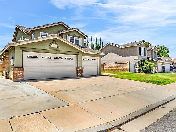 Stunning West Palmdale Retreat in highly Desirable Rancho Vista... Welcome to your dream home nestled in the heart of sunny West Palmdale, located in the highly sought-after Rancho Vista community. This move-in-ready two-story gem combines elegance, comfort, and modern eco-conscious living, perfect for families and entertainers alike. Step through a grand double entryway into a sun-drenched interior featuring vaulted ceilings and an open-concept layout. The spacious living and formal dining area flow effortlessly into a gourmet kitchen and family room with eye-catching cabinetry, white tile countertops, and custom flooring throughout. Newer interior paint throughout adds a crisp, contemporary touch.With 3 bedrooms or an optional 4 bedrooms that is currently a downstairs office and 3 beautifully bathrooms, there’s ample room for everyone to unwind. Upstairs, enjoy a serene escape on your private primary bedroom, while the sprawling downstairs area opens to the backyard—perfect for seamless indoor-outdoor living. Outside, a shimmering pool with jacuzzi, invites you to relax or entertain in style. Enjoy the benefits of solar panels offering energy efficiency and long-term peace of mind. The attached 3-car garage provides abundant storage, and the location can’t be beat—just minutes from Rancho Vista Golf Club, Marie Kerr Park & Amphitheater, top-rated schools, shopping, and dining. The solar panels are leased so the buyers will need to assume that lease with Sun Run Solar. Seller will not be paying off the lease. The monthly Solar lease is $237 and the payoff is around $25,000.