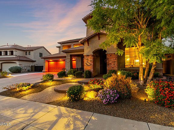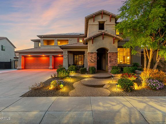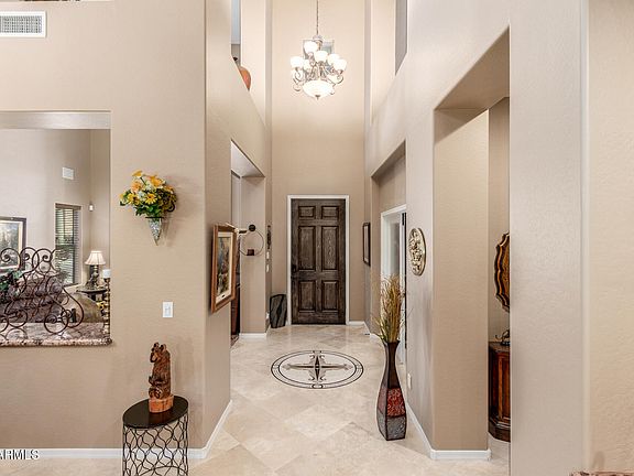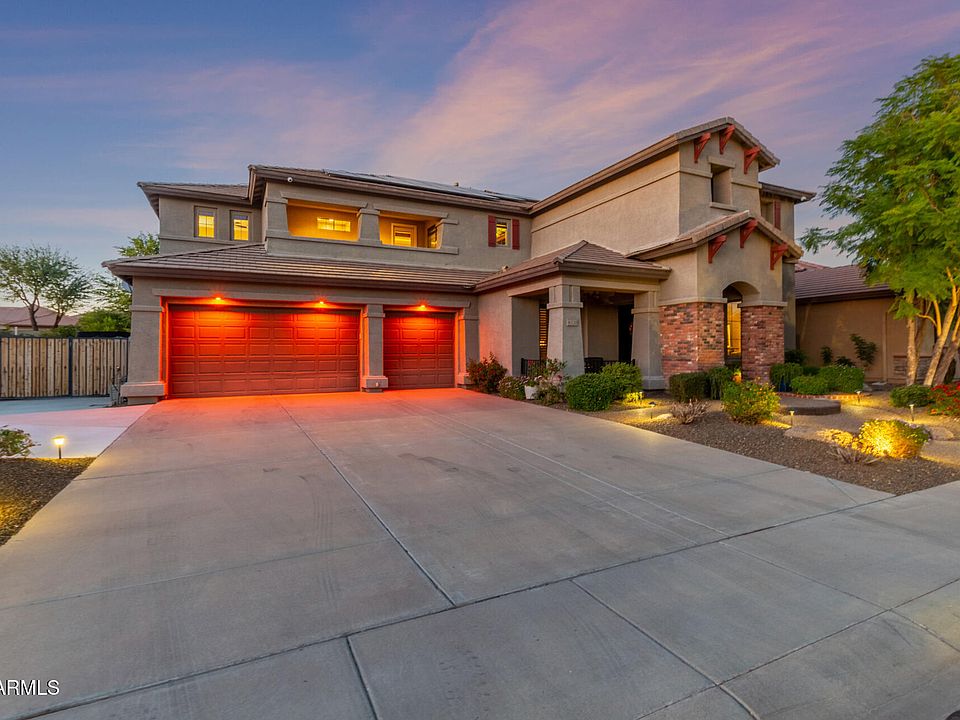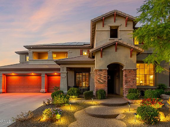 Beautifully upgraded Wonder model in Anthem, offering spacious living and exceptional indoor/outdoor entertaining. The updated kitchen features upgraded cabinets with pull-outs, granite counters, GE Monogram appliances, gas cooktop, wine fridge, wooden ceiling beams, and a large center island that opens to the family room with custom built-ins, crown molding, surround sound, and a gas fireplace. Home features include new wood flooring, new carpet, refinished travertine, custom blinds, Nest thermostats, whole-home soft water, R/O system, instant hot water, keyless entry, whole-home internet, Control4 automation, owned security system, full home surveillance, and a newly upgraded home theater. The spacious primary suite and office with custom built-ins are conveniently located downstairs. The exterior is equally impressive with OWNED solar, three new A/C Trane units, new landscaping, extended concrete pad, security cameras on all corners, and a wrought-iron privacy enclosure. The resort-style backyard includes a new pool with water feature and lighting, a built-in BBQ, an outdoor fireplace, a gazebo, putting green, and storage shed. The oversized lot includes a large side yard with an RV gate.