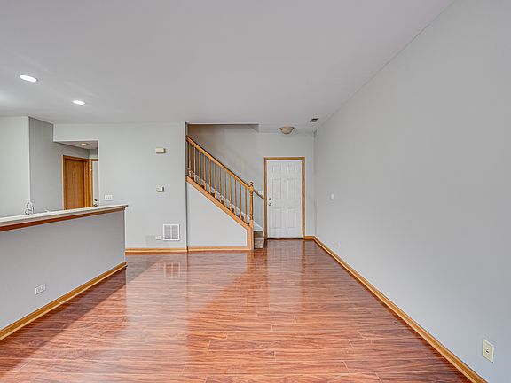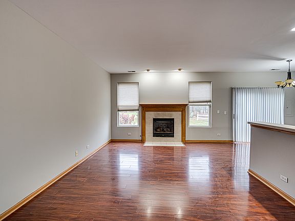 Discover the elegance of Blackstone's finest, the Blue Sapphire Model, located within the highly coveted Naperville School District 204. This home boasts an open kitchen with 42-inch oak cabinets and a breakfast bar, complemented by hardwood floors. The spacious living room features a gas fireplace adorned with a custom oak mantel. Enjoy the convenience of a sizable loft and a second-level laundry area. Additional amenities include built-in cabinets in the garage, Levolor soft blinds throughout, and a large common area with a concrete patio behind the home. Please note, this is a non-smoking property requiring a credit score of 650 or higher, and no pets are permitted.