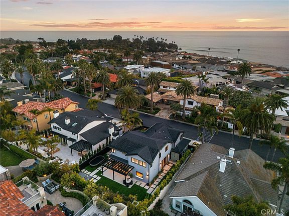 A full renovation, down to the studs, with an impressive new style and exceptional luxury distinguishes this partial ocean-view home in the exclusive guard-gated Breakers community on the Shores side in San Clemente. Providing a tranquil setting and neighborhood private beach access this home wrapped in distinctive full wood grain siding is in proximity to open nature and some of California’s best beaches, including Trestles, which gives this home a unique, coastal retreat feel. Interiors spaces offer 2,950 +/- s.f., of elegant comfort and bold design with 4 bedrooms, and 5 bathrooms. Upon entry you are greeted with an airy entry hall with exceptionally tall ceilings, creating a stunning first impression. Concrete tile-like floors shine, and a formal living living space exudes the California beach lifestyle with metal and glass bi-folding doors that open to the front courtyard and dining room feature statement lighting. The family room is a relaxed open concept space, where light and air filter through bi-folding glass doors that open to the backyard, offers a fireplace swathed in black brick, with bar seating connecting to an oversized island with quartz counters. Custom cabinets and floating shelves in the kitchen, with a seamless panel refrigerator and a window that opens to the backyard are amenities perfect for upscale entertaining. All the bedrooms boast completely remodeled en-suite bathrooms, which showcase stunning custom tile-work, are quiet retreats with clean, simple details. Best of all is the primary bedroom with an enviable en-suite that offers dual vanities, a freestanding soaking tub, and a separate custom shower. Exterior spaces are fantastic focal points, with new front and rear hardscape, a spa with soothing water features, and a custom fire pit that creates a cozy place for year-round stargazing. The renovation was completed in January 2023 and includes new windows and doors, a new roof, new AC units, tankless water heater, custom railing and stairs, new hardscape and turf front and rear for low maintenance, a built in BBQ, whole house water filtration system and reverse osmosis, all new surfaces throughout, outdoor shower, and a 3-car garage with plentiful built-in cabinetry and new garage doors, The Breakers community offers residents amenities such as a pool, spa, pickleball court, private park, and is conveniently located near top-rated schools, world class surfing, restaurants and shopping on Del Mar Street.