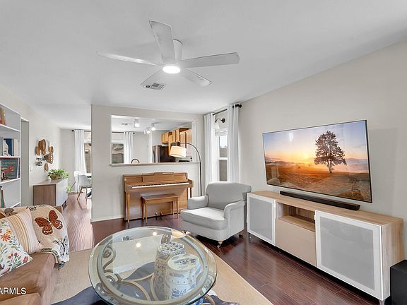 Tucked into a charming community, this lovingly maintained home is move-in ready with fresh neutral paint, wood laminate flooring, & ceramic tile. The kitchen has an open flow, appliances included, while the spacious living area is bathed in natural light. This home is perfect for creating cozy moments or nurturing your favorite houseplants. You'll love the smart, spacious layout that makes the most of every square foot, offering both comfort & functionality. Step outside to enjoy your thoughtfully landscaped front & backyard spaces, designed with ease in mind. Ideal for relaxing or entertaining. A new A/C unit offers peace of mind, and the epoxied garage floor adds a polished touch. Whether you're seeking simplicity, comfort, or a bright new beginning this home is ready to welcome you.