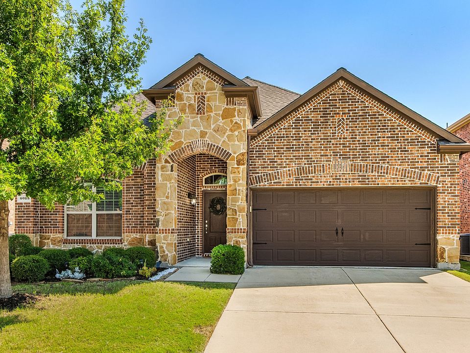 Wonderfully Maintained 3 Bed 2 Bath plus Study home in Frisco. The exterior has an upgraded Stone and Brick Elevation with front entry garage. Dramatic double arched entry with Hardwood Wood Flooring throughout the living areas reflects the beauty and quality of this home . The Open Floor Plan allows Abundant Natural Light to brighten the look and feel inside the main living areas. The Kitchen is centrally located and has Stainless Steel Appliances including a Gas Range, Granite Countertops Modern Lighting and Significant Cabinetry for this size of home. An Additional Serving Bar with Built in Cabinets adds sophistication and is the perfect place to store Wine Glasses & Seasonal Dishes for entertaining. The Living Room is Large with a Gas Burning Fireplace and accented with a Study Niche. The Primary Suite has plenty of room for a King Size Bed and features a Bathroom with Double Vanity, Garden Tub plus a Separate Shower. Bedroom 2 & 3 are located up front and separated by a Full Bath. The Study is located away from the Bedrooms allowing for privacy & seclusion. The Laundry Room is Spacious and large enough for a refrigerator plus there’s a Mud Cabinet by the Garage Door. In addition to all the inside upgrades, the back yard has an extended concrete patio to allow for a sitting area or a built in grill. This home and its many features is priced for a quick sale, so please stop by this weekend.