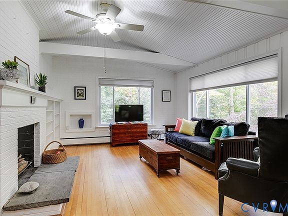 Tucked among the trees on nearly an acre of land, 4013 Hickory Rd invites you into a world of timeless character and natural serenity. This 4-bedroom + office, 2-bathroom bungalow offers warmth, character, and an undeniable sense of peace — the kind of home that feels discovered rather than simply found. A screened-in front porch greets you with the gentle hush of nature. Step inside to a light-filled great room, where beamed ceilings stretch above a wood-burning fireplace framed by built-in shelving. Sunlight filters through oversized windows, filling the space with a soft glow that shifts with the day. Down the hall, 3 inviting bedrooms offer quiet corners for rest and reflection, each enhanced with plantation shutters and ample storage. Additionally, a quiet loft overlooks the staircase — a perfect perch for an artist’s studio, library nook, or workspace. On the lower level, wide windows open to woodland views, bringing the outside in. The open living area centers around a wood-burning stove, while the spacious kitchen offers newer appliances, generous counter space, and an easy flow that invites gathering. The serene primary bedroom feels like a private retreat, with dual closets framing a window seat that overlooks the gardens — a perfect spot to watch the seasons change. But it’s the backyard that truly defines this home with a landscape that feels alive. Stone walkways curve through blankets of green, past blooming flowers and graceful trees that shelter songbirds and butterflies. This fully fenced yard offers privacy and space for quiet mornings, summer BBQs, and moments that ask to be lingered over. Other thoughtful updates include a whole-house dehumidifier and mini splits for added comfort and control. Just minutes from the James River Park System and Stony Point Fashion Park, 4013 Hickory Rd offers the best of both worlds: a place of calm and connection, privacy and proximity. A rare Richmond retreat that must be experienced to be believed. Don’t miss a rare opportunity - schedule your showing today!