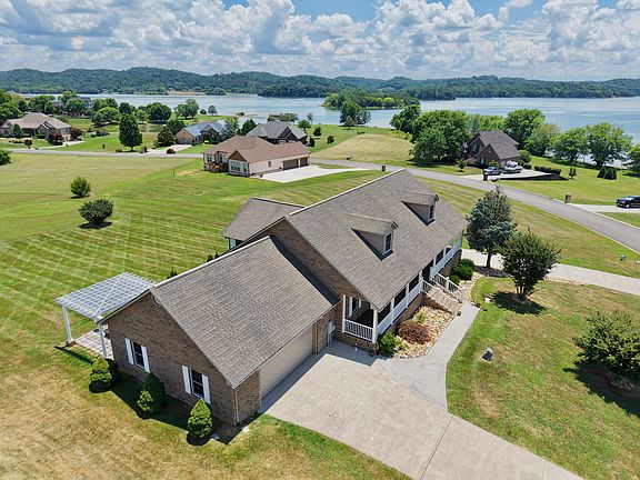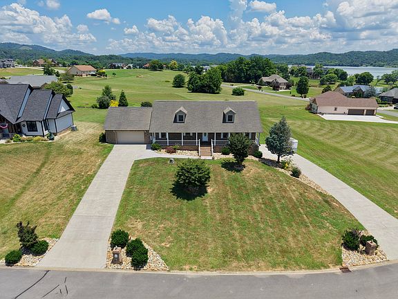 This home features over 3,000 sq ft of finished space and nearly 2,000 sq ft of unfinished space. It is located inside the gated Legacy Bay community in Mooresburg, TN. Legacy Bay is a well-kept community offering resort-style amenities like a pool, tennis courts, and a private marina for lake access. This two-story home offers great lake views from several rooms inside as well as the large back deck and the front porch that stretches the entire length of the home. The main living spaces are well-sized and filled with natural light, including a sunroom that opens up to a wonderful view of the lake. The main level features a well equipped kitchen with bar top seating and space for a dining room table, an office space, a full laundry, the master suite with its step-in shower and soaking tub, a second bedroom as well as another flex room and a gas burning fireplace in the living area. Upstairs you will find a second family room, a large third bedroom, another full bath and a kitchenette. There's a full unfinished basement downstairs that's already setup for a workshop and includes heating and air vents that is ready for whatever you have in mind — extra bedrooms, a rec space you've always wanted, or simply keep it as a workshop and storage area to house extra cars, a boat and/or jet skis! There is an upper and lower driveway for plenty of parking and the level backyard is perfect for outdoor activities and entertainment. Spend your evenings around the fire pit underneath your pergola and the night sky. This price per square foot will be hard to beat anywhere, especially when considering the views and the access to Cherokee Lake. You should definitely schedule a showing to come and see this one while you can.