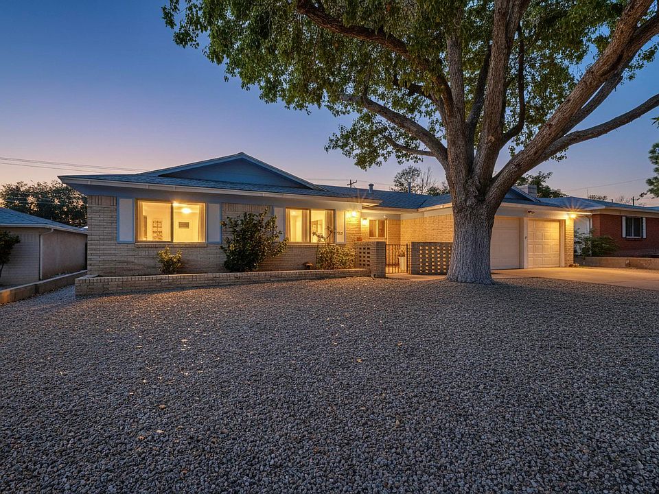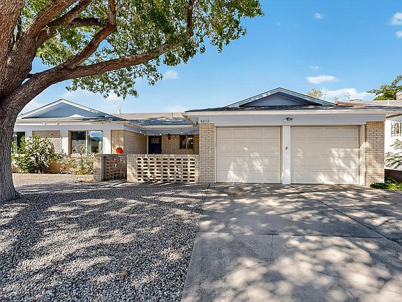 Charming all-brick 4 bedroom, 2 bath home offering generous living spaces and thoughtful details throughout. The inviting den features a wood-burning fireplace and wet bar, while French doors open to additional dining and living areas filled with natural light. A bright eat-in kitchen is complete with plenty of counter top space, stainless appliances, and plenty of cabinet space! Step outside to a private backyard retreat with shaded patios, seating areas, and raised garden beds--perfect for entertaining or relaxing. Additional highlights include refrigerated air, storm windows, inside laundry with sink, an oversized 2-car garage with workspace, and owned solar panels. Don't miss out and book your showing today!