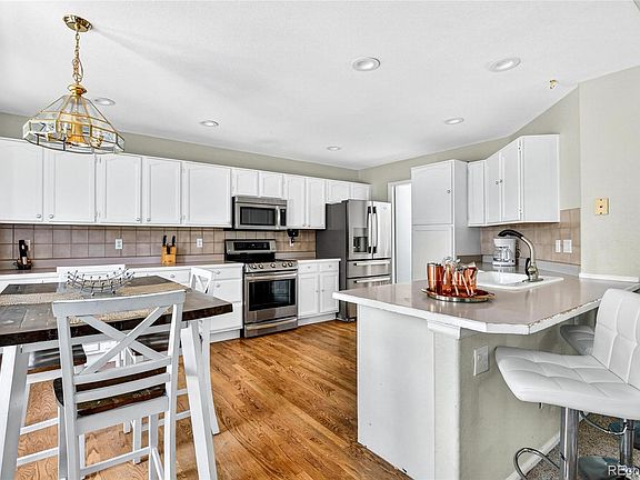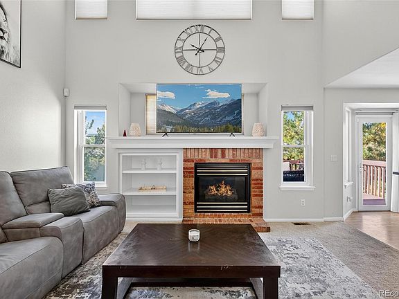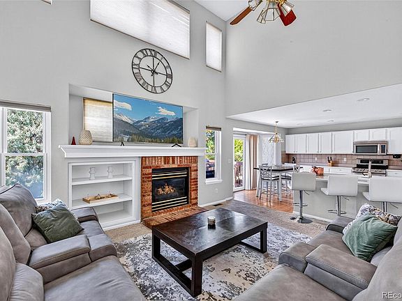 Welcome to this spacious five-bedroom, five-bathroom home in the desirable Spring Creek Meadows neighborhood, within the highly regarded Cherry Creek School District. As you step inside, you’ll be greeted by soaring ceilings, a light-filled layout, and spaces designed for both comfort and functionality. The living room is truly the heart of the home, with dramatic high ceilings and large windows that flood the space with natural light. A cozy fireplace adds warmth and creates an inviting place to gather or unwind at the end of the day. The main level also includes a dedicated office (or optional bedroom), formal dining space, and a bright kitchen with breakfast nook that flows seamlessly into the living areas. Upstairs, the primary suite is a true retreat with vaulted ceilings, a five-piece en suite bath with jetted tub, and a spacious walk-in closet. Two additional bedrooms and a full bathroom round out the upper level. The finished walkout basement offers endless possibilities, complete with two bedrooms, two bathrooms, and a bonus entertaining room with a bar area—perfect for movie nights, game days, or hosting guests. Enjoy the outdoors with a private fenced yard, deck, and patio surrounded by mature landscaping. With over 3,400 finished square feet, double-pane windows, central air, and mountain views, this light, bright home truly has it all. Don’t miss your chance to make it yours!