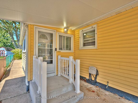 Well maintained 2+1 bedroom, 2 bathroom home on a large 60' x 185' lot situated across the street from Chippawa Lions Park in the quiet community of Chippawa. This spacious home features a large mud room, an eat-in kitchen with updated quartz counter tops, separate dining room, living room, gleaming hardwood flooring, primary bedroom w/wall to wall closet and a beautiful 3 season sun room. The lower level boasts a recroom, a bedroom, 3 pc bathroom, & a laundry room with tons of storage space. You'll love the outdoors with the beautifully landscaped, pool sized back yard with a patio and a storage shed. Other notable features include central vac, natural gas BBQ hook-up, lawn sprinkler system and updated roof, windows, furnace & a/c in recent years. Awnings on the home are removable. Whether you are a first-time buyer or looking for a home to enjoy retirement in, this home is one you won't want to miss.