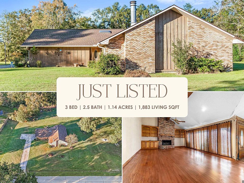 Fantastic opportunity in a desirable Gonzales location. This 3-bedroom, 2.5-bath home offers 1,883 sq ft of living space and sits on a wide, open 1.14-acre lot—perfect for buyers looking for space, privacy, and long-term potential. The floor plan features a large living area with vaulted ceilings and a brick fireplace, a formal dining area, a breakfast space with built-ins, and a spacious kitchen with excellent layout options. The bedrooms are generously sized, including a primary suite with great natural light. Outside, the expansive lot provides endless possibilities for outdoor living, future additions, gardens, workshops, or recreational space. A small pond is located toward the back of the property and adds a natural touch to the setting. With the right vision, this property can be transformed into a standout home or investment. Conveniently located near schools, shopping, and major highways.