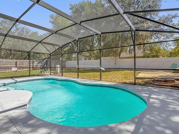 Move-in Ready! Upgrades & Updates Throughout! Welcome to this beautifully remodeled 3-bedroom, 2-bathroom pool home in the quiet and established neighborhood of Carlton Village—just minutes from downtown Lady Lake. Perfectly designed for both family living and entertaining, this single-story home features an in-ground pool with a fully enclosed screened lanai and extended patio, creating your very own backyard oasis. Inside, the home showcases a remodeled kitchen with custom cabinetry, new counters, stainless steel appliances, and ample storage. Updates continue throughout with remodeled bathrooms, new doors, fresh neutral paint, designer lighting, and a combination of tile and luxury vinyl plank flooring for low-maintenance living. A set of new sliding glass doors offers stunning views of the pool and backyard. The converted garage provides a large, versatile bonus space—ideal as a bedroom, family room, game room, or private retreat. Additional highlights include a new roof (2022), ceiling fans, a transferable home warranty, and a fully fenced yard with beautiful landscaping. No HOA means added freedom, while the nearby park with lake and nature trail adds to the charm of the location. This home offers the perfect blend of country living and cozy comfort, with easy access to HWY-441, local shops, and dining. Truly move-in ready, this pool home checks every box—don’t miss your chance to make it yours!