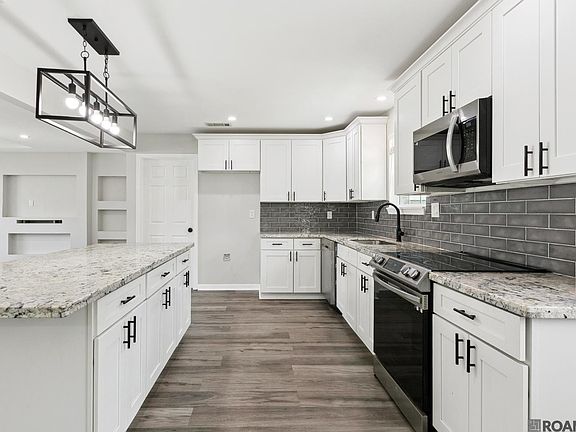 This beautifully updated 3 bedroom, 2 bath home is move in ready and packed with upgrades. Located on a quiet dead end street, it offers peace, privacy, and modern comfort throughout. The kitchen features granite countertops, a large granite island, modern fixtures, and generous cabinet space, perfect for everyday living or entertaining. The open living area includes a custom built in accent wall that adds a stylish focal point! Enjoy spacious bedrooms and updated bathrooms, including a marble tiled tub wall that brings a luxurious touch. Large plank laminate wood flooring flows throughout the home, and the oversized laundry room adds extra convenience. The roof is approximately 2 years old, offering added peace of mind. Outside, the large yard provides plenty of space to relax, garden, or entertain. Do not miss this turn key home with thoughtful finishes and timeless charm. Schedule your private showing today.